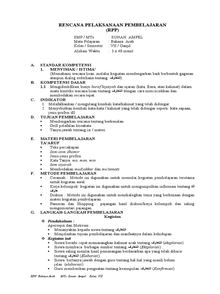 Rencana pelaksanaan pembelajaran (rpp) mata pelajaran fikih kelas x semester ganjil ini sesuai dengan kma 183 dan bisa dipergunakan dengan sistem daring seperti sekarang ini. Selain itu, bahasa arab juga dapat dijadikan sebagai alat untuk mendalami. Rpp daring 1 lembar bahasa indonesia kelas 7. Mi bahasa arab iv/i (satu) kalam tentang dengan menggunakan 20 mufradat baru 2 dan 4 (12 x 35) tanya jawab, penugasan. Melengkapi kalimat rumpang dengan kata yang tepat sesuai dengan isi wacana lisan.